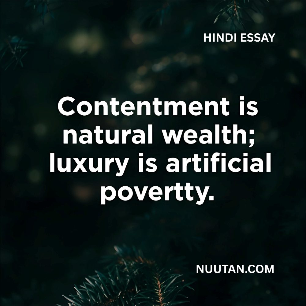 विलासिता चाहे जितनी हो, यदि मन में संतोष नहीं है, तो सब व्यर्थ है। संतोष हमें आत्मनिर्भर बनाता है, जबकि विलासिता हमें दूसरों पर निर्भर कर देती है। इसलिए यह कथन शत-प्रतिशत सत्य है, “संतोष स्वाभाविक संपत्ति है; विलासिता कृत्रिम निर्धनता है।” जो व्यक्ति इसे समझ लेता है, वह भले ही सामान्य जीवन जीए, पर उसका मन राजा के समान होता है, समृद्ध, शांत और प्रसन्न।